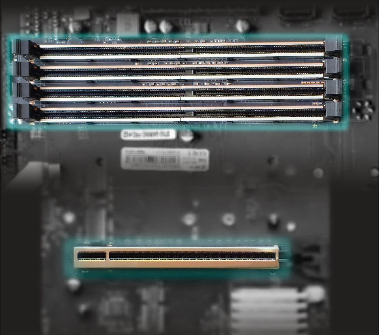 The advanced PCI-E/DDIM Steel Slot packed with solid cover that prevent any signal interference with graphics cards, memory. It also ensures the heavy graphics cards to be well-installed in the PCI-E slot safely and protect memory modules, empowering you to insert modules with speed, accuracy and confidence.